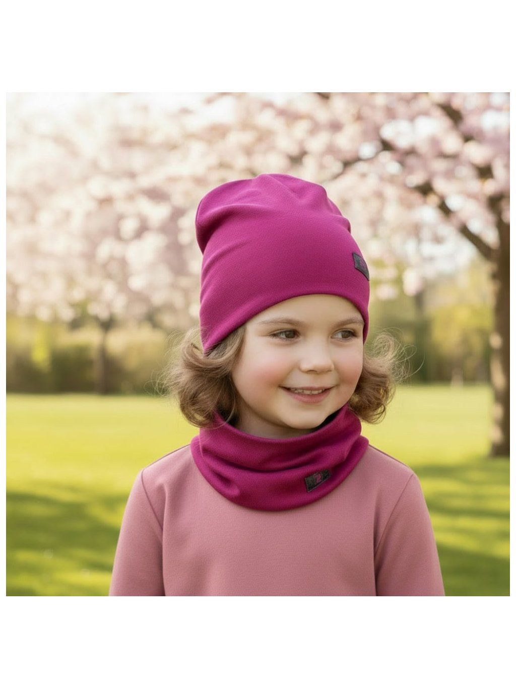Bavlněná čepice a nákrčník Dráče - Pastels Double 55, fuchsiová