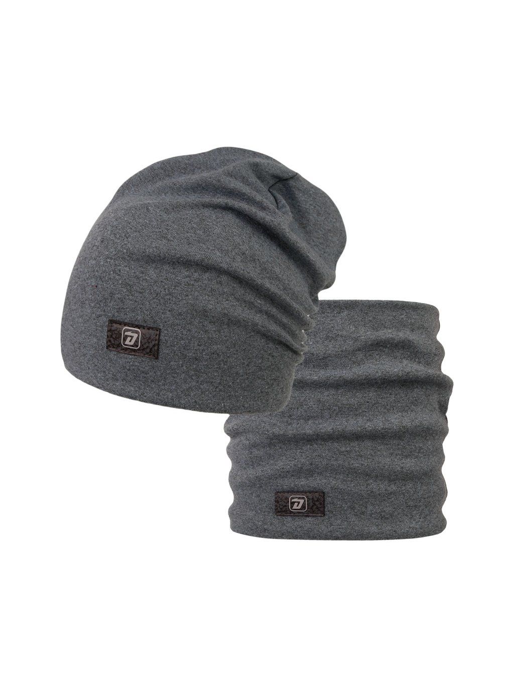 Bavlněná čepice a nákrčník Dráče - Pastels Double 66, šedomodrá melír