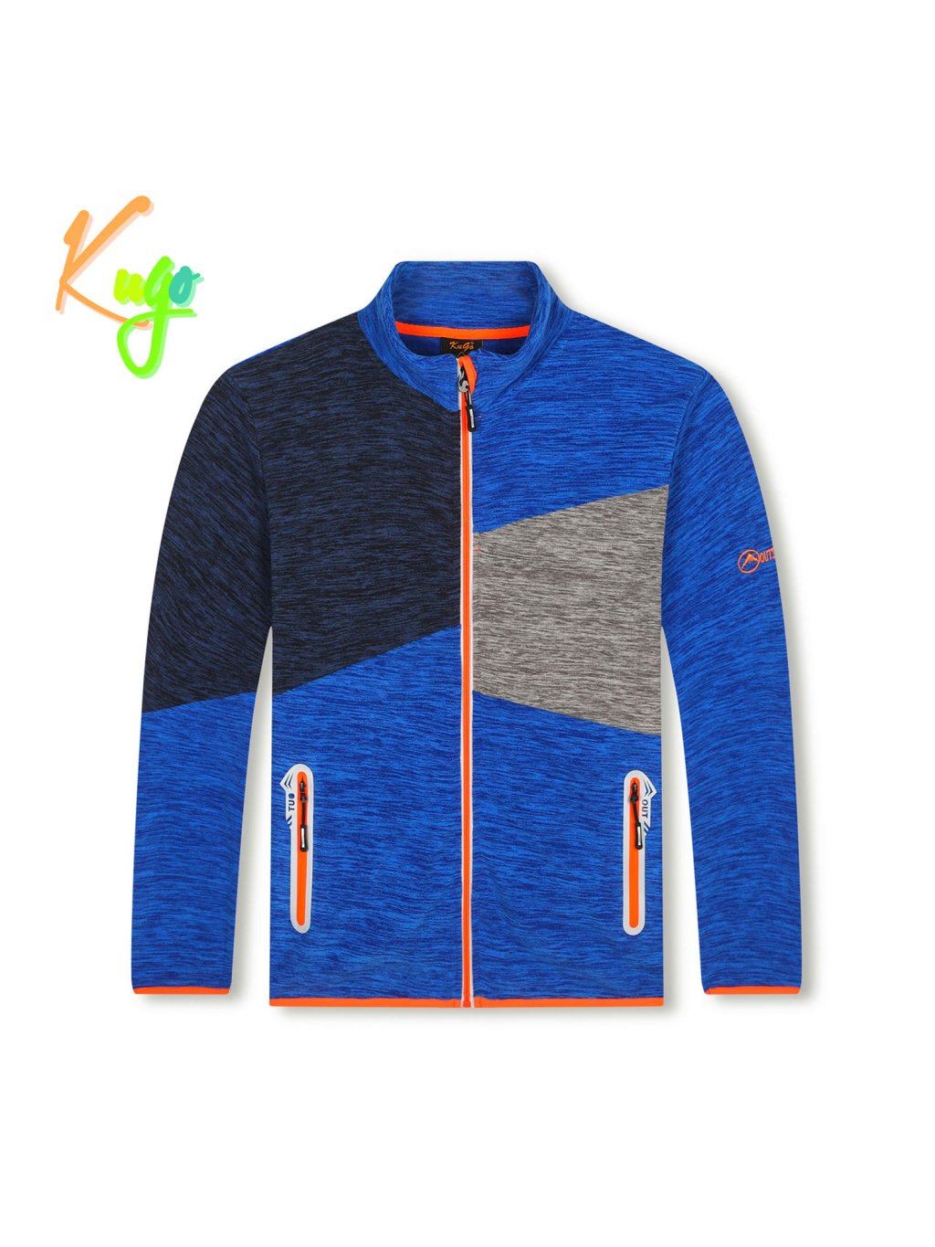 Chlapecká flísová mikina - KUGO FM8786, modrá / oranžové zipy