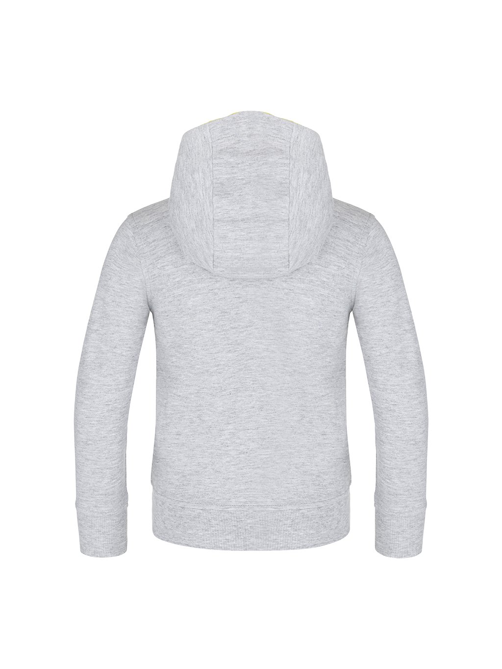 Kapuce je na vnitřní straně v kontrastní žluté barvě a nastaví se plochými páskami. Hlavní kostěný zip má na horním konci praktické krytí, které chrání bradu před skřípnutím kůže. Rukávy a spodní okraj jsou volné, tj. bez stahování. Mikina má vpředu příjemný pěnový potisk s cyklo motivem, který nadchne především milovníky kol. Perte na 30 °C s aviváží.