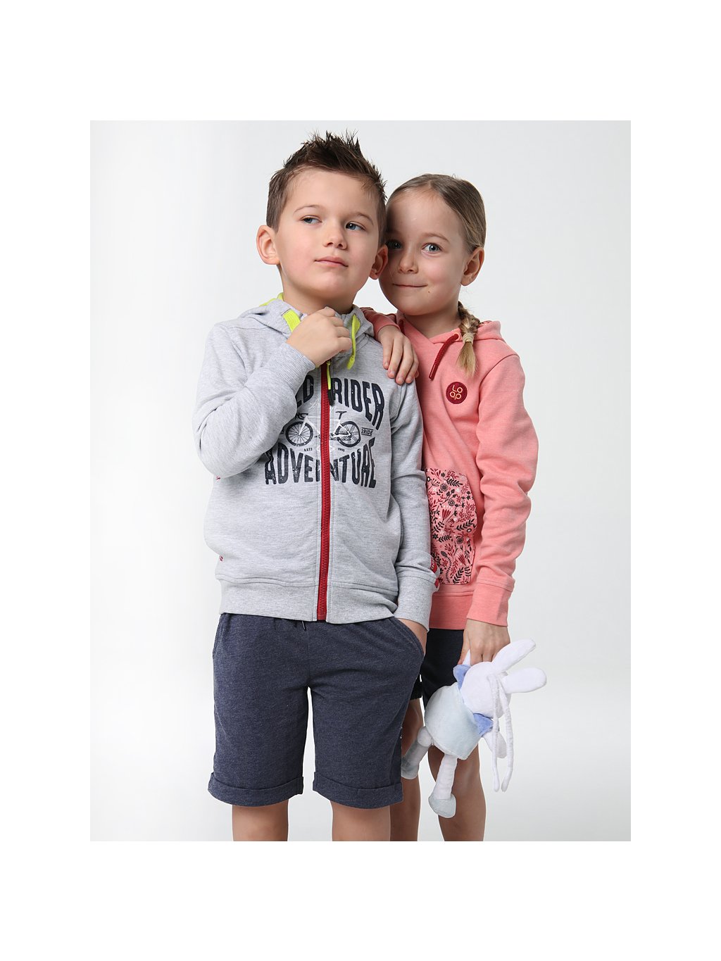 Pohodlná bavlněná chlapecká mikina s kapucí DONTOK má zapínání na zip a dvě otevřené kapsy na bocích. Tato celoroční tepláková mikina s příjemnou jemnou podšívkou (single jersey) je ušitá v klasickém střihu a ve střední gramáži 260 g/m2.