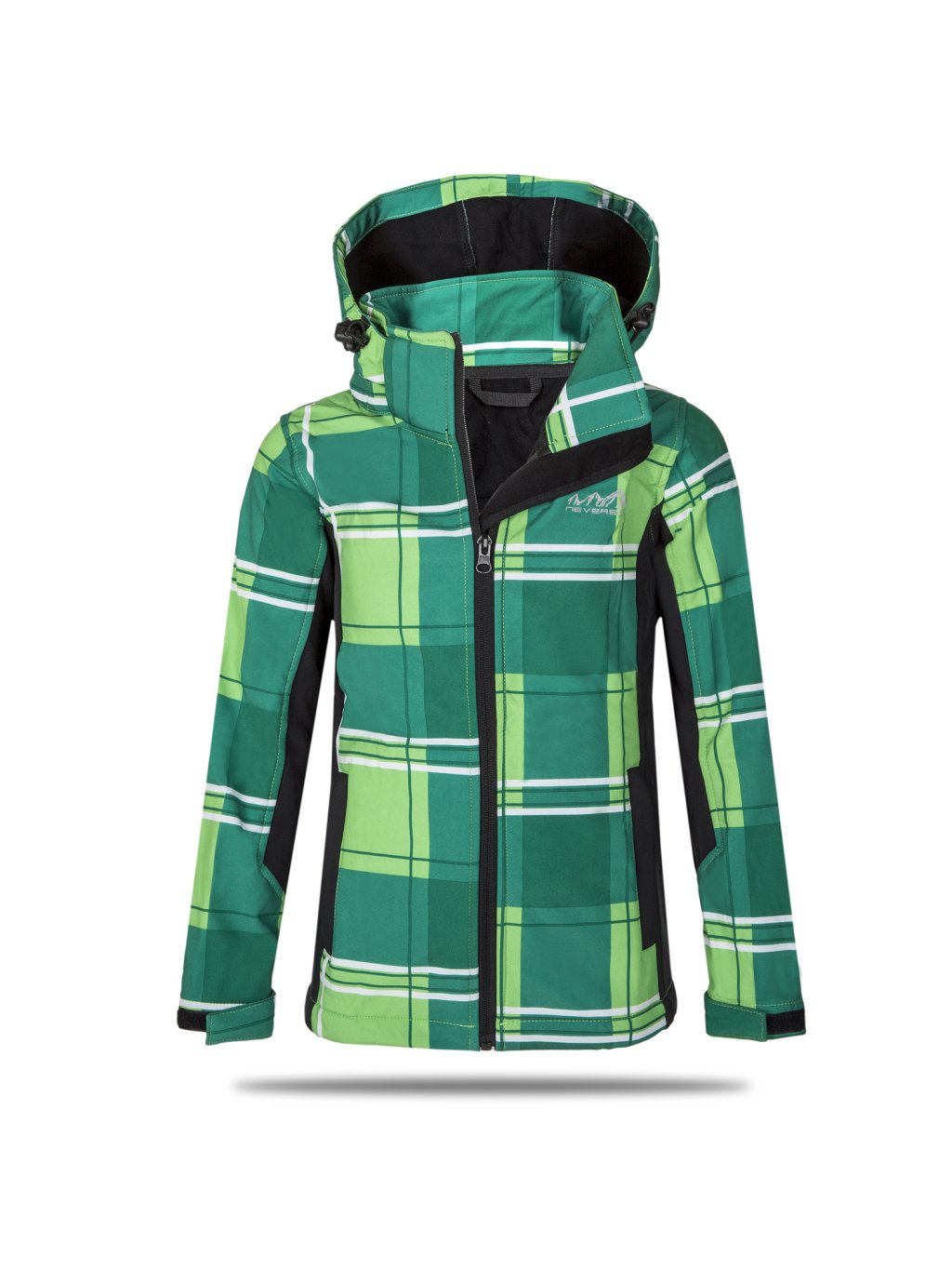 Chlapecká softshellová bunda - NEVEREST 42613C, zelená kostka/ černý zip