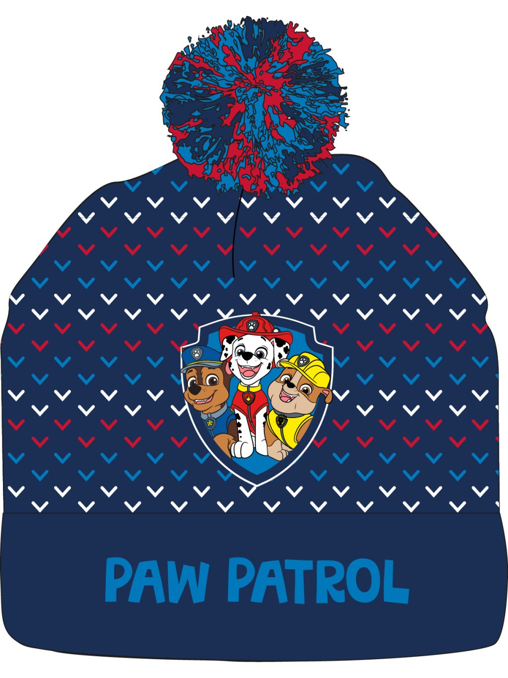 Chlapecká pletená zimní čepice s bambulí s motivem Tlapková patrola.