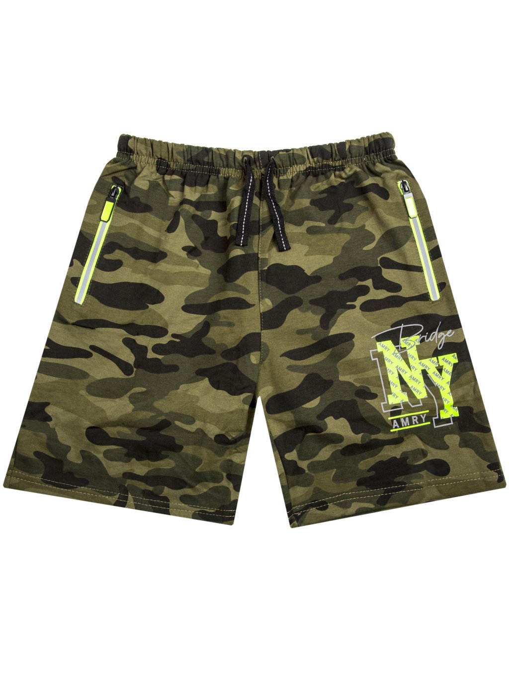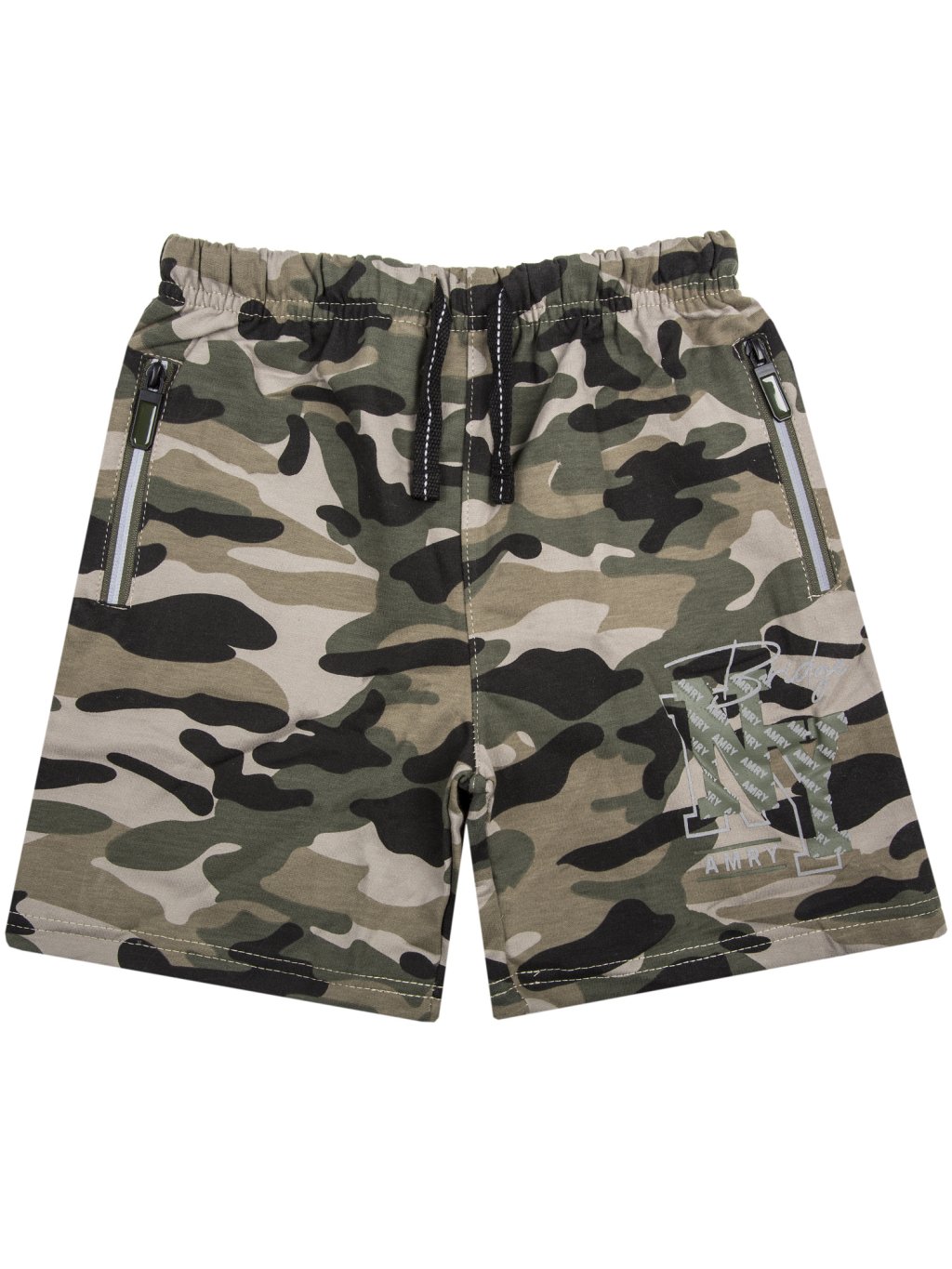 Chlapecké kraťasy maskáčové, v pase do gumy s gumičkou a olivkou na stažení, zapínací zipy, materiál 80% bavlna, 15% polyester, 5% elastan