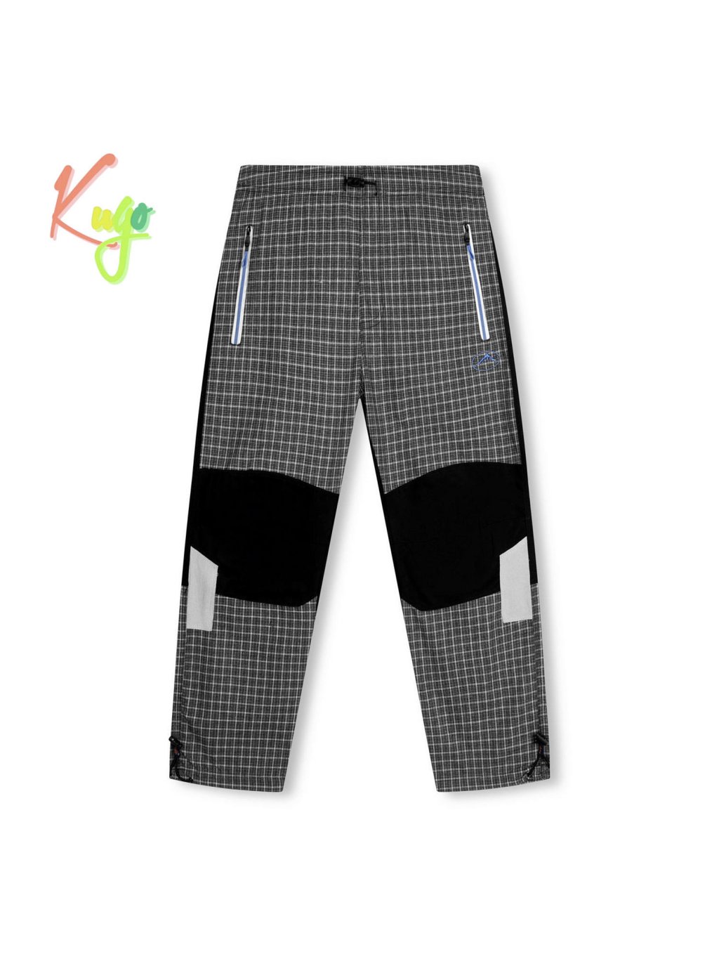Chlapecké plátěné kalhoty, v pase do gumy s možností stáhnout olivkou, dole na nohavicích též olivky ke stažení, dvě kapsy na zip na předním díle, jedna kapsa na suchý zip na zadní straně, signální prvky