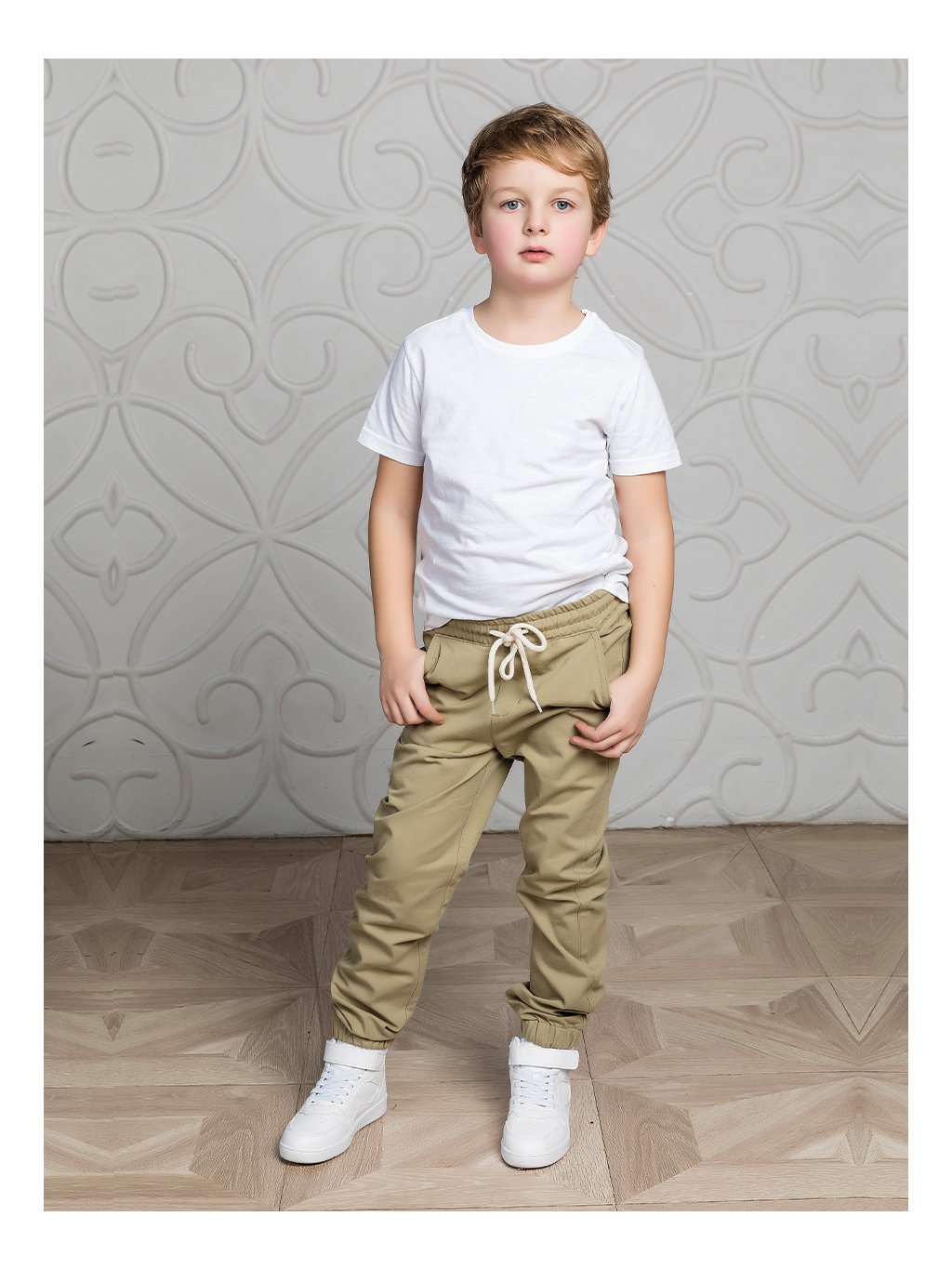 Chlapecké bavlněné plátěné kalhoty s gumou a šňůrkou na stažení, dole do gumy, dvě kapsy