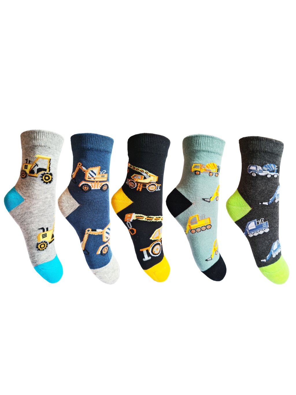 Sada 5 párů klasických chlapeckých ponožek s motivem bagrů