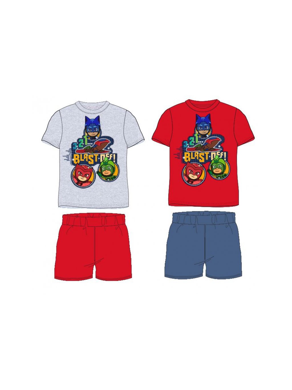 Chlapecké bavlněné pyžamo s krátkými červenými nohavicemi, motiv PJ Masks