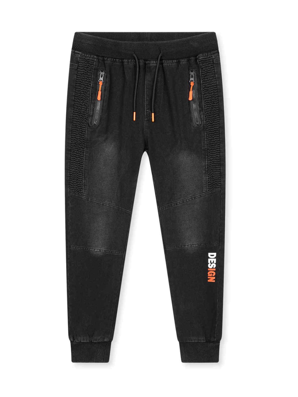Chlapecké riflové kalhoty / tepláky - KUGO CK0929, černá / oranžová aplikace