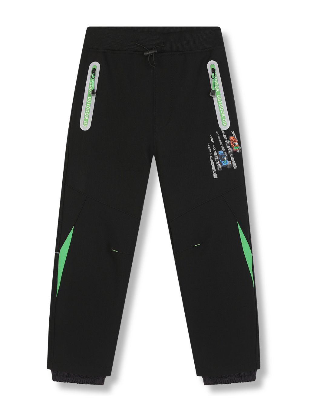 Chlapecké softshellové kalhoty, zateplené - KUGO HK5617, černá / zelené zipy