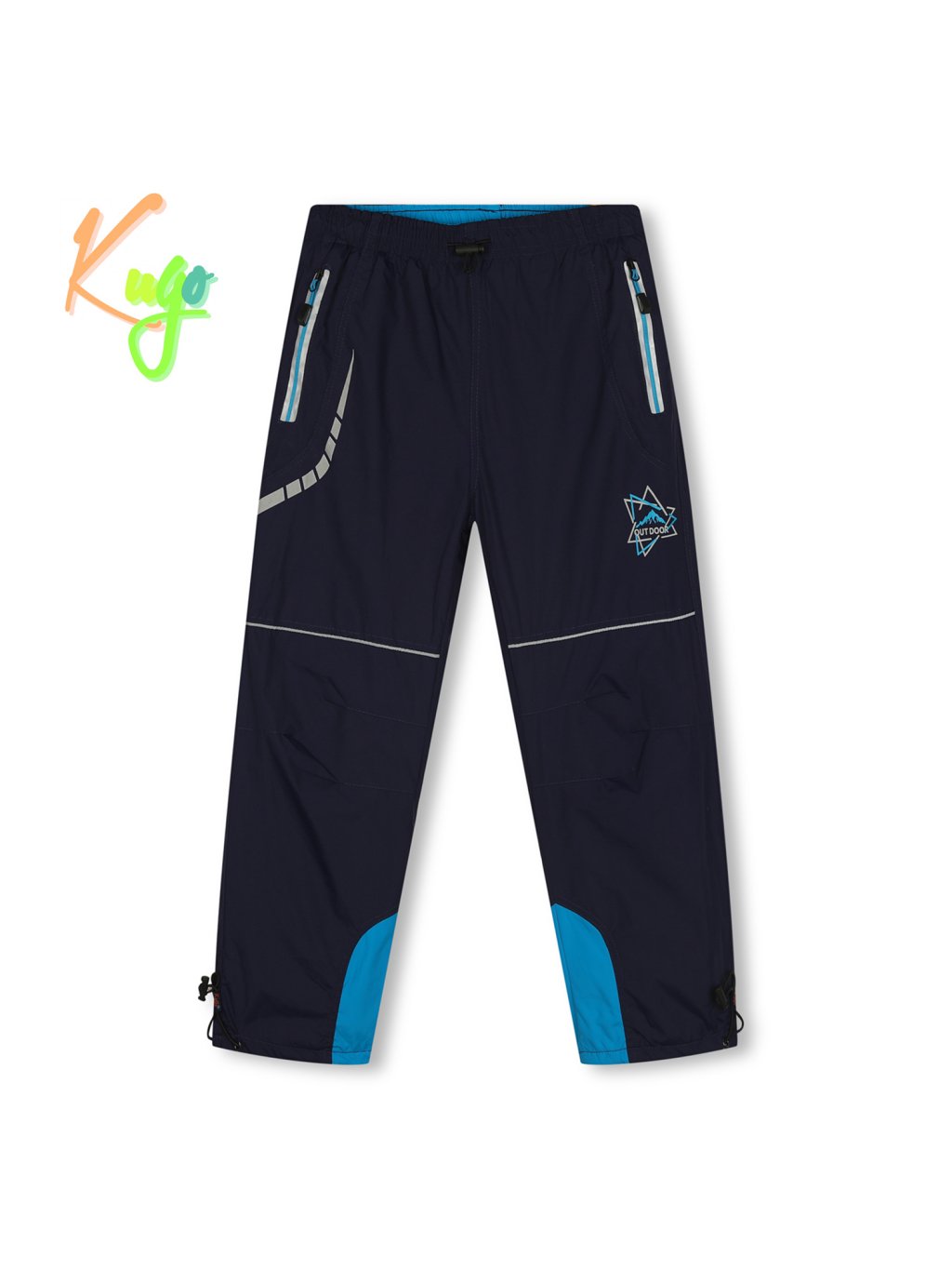 Chlapecké šusťákové kalhoty, zateplené - KUGO DK7130, tmavě modrá/ tyrkysové zipy
