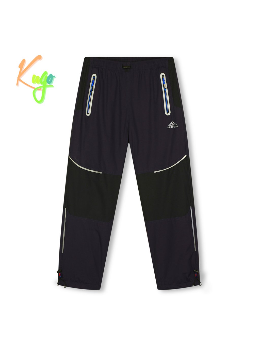 Chlapecké šusťákové kalhoty, zateplené - KUGO DK7137, tmavě šedá / modré zipy