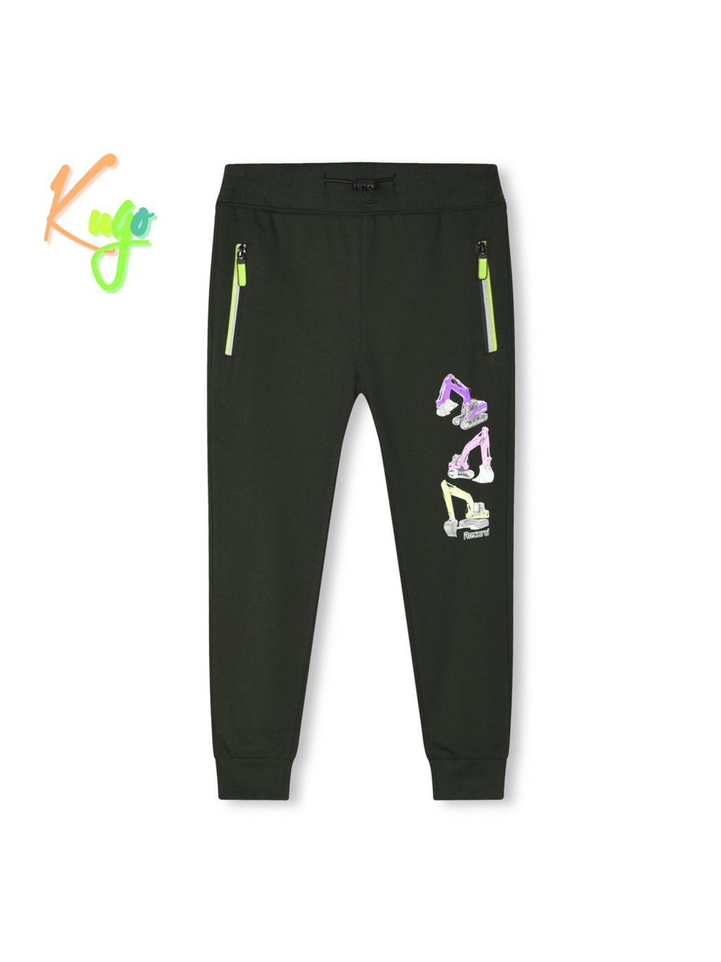 Chlapecké dlouhé bavlněné tepláky, dole ukončení do nápletu, v pase guma a olivka na stažení, dvě kapsy na zapínání, motiv BAGR