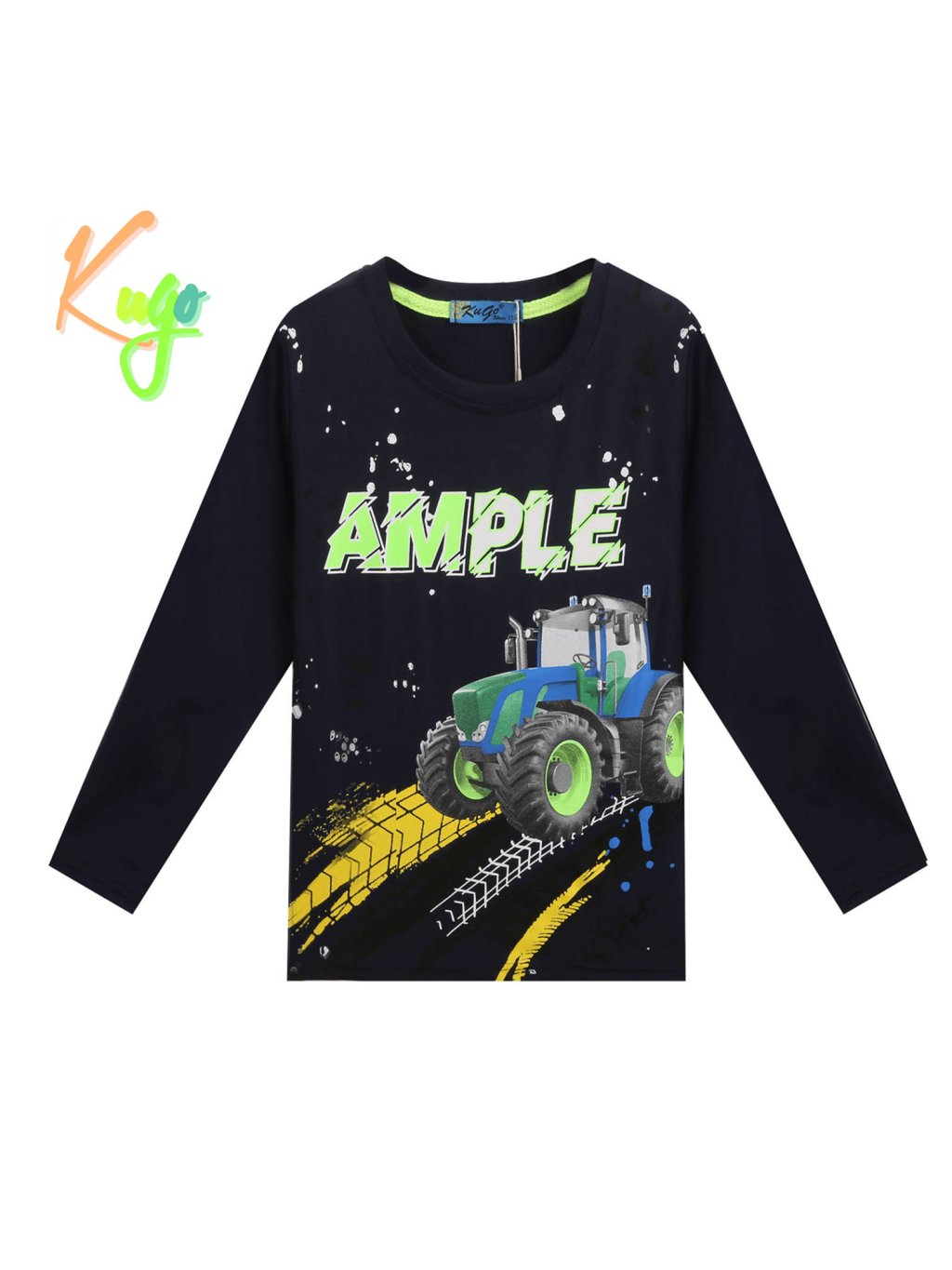 Chlapecké bavlněné tričko s příměsí elastanu s dlouhým rukávem, motiv TRAKTOR