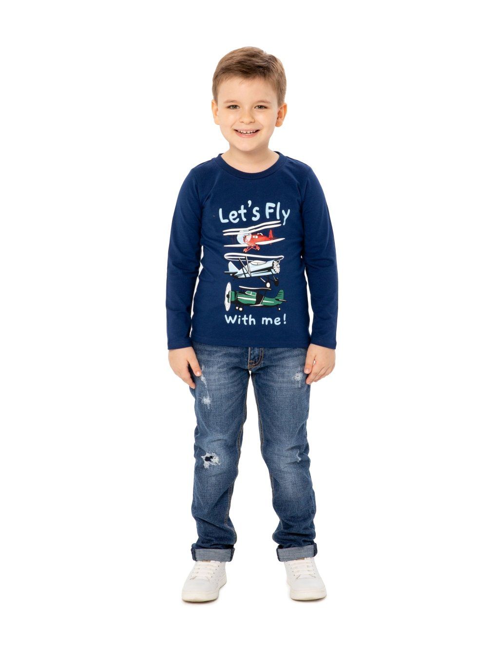 Chlapecké bavlněné triko s příměsí elastanu s dlouhým rukávem