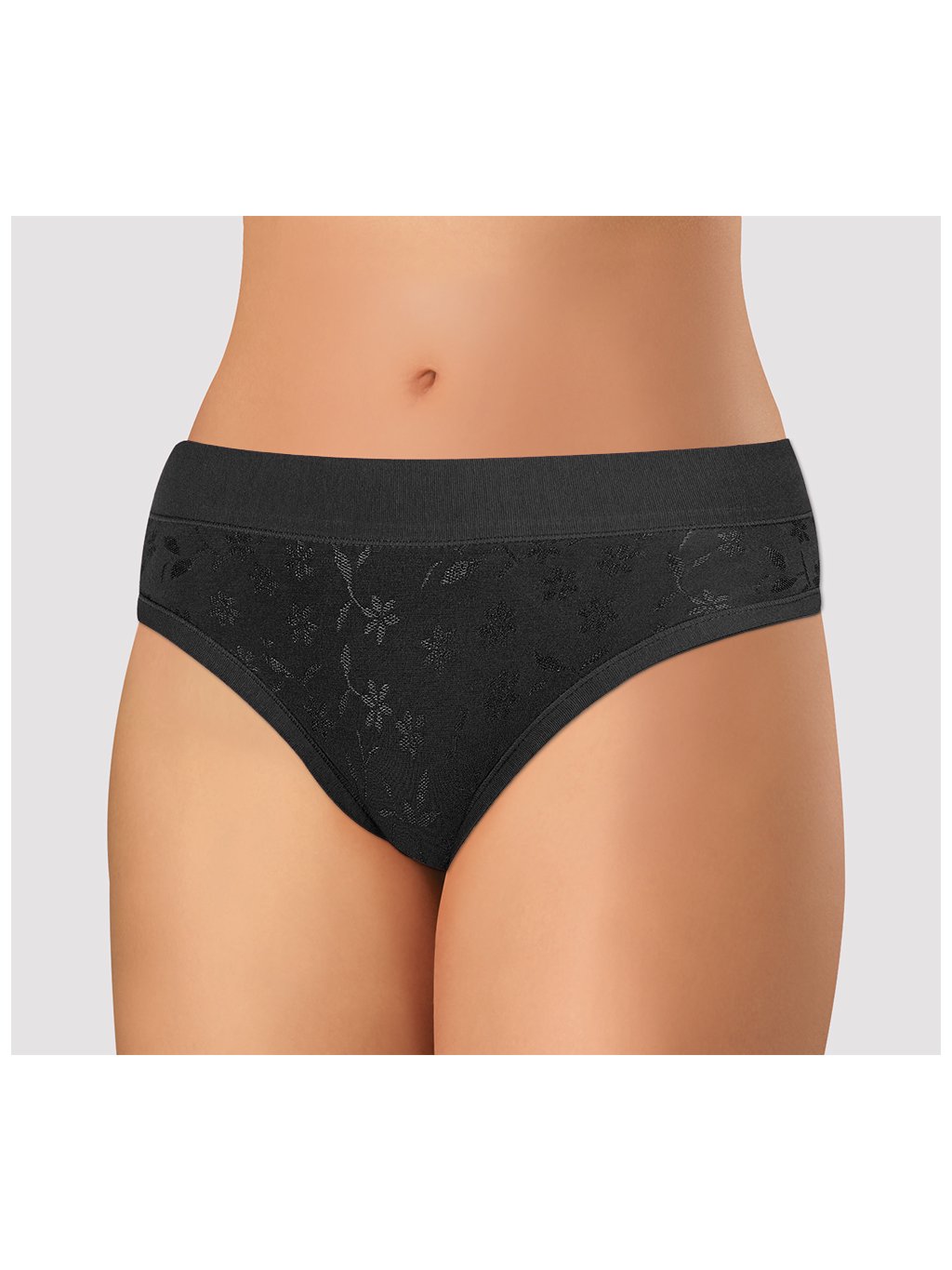 Dámské kalhotky klasického střihu. Kalhotky jsou vyrobeny z velmi kvalitní elastické bavlny s příměsí vlákna Tactel, které dodává materiálu hebkost a prodyšnost. Materiál se skvěle přizpůsobí postavě a drží stálý tvar prádla . Na předním dílu kalhotek je hezký žakár. Zadní díl kalhotek je hladký. Díky širokému lemu v pase ideálně přiléhají k tělu a jsou velmi pohodlné. Komfortní lem okolo nohou zaručuje, že se kalhotky nezařezávají do stehen . Bavlněný klínek.