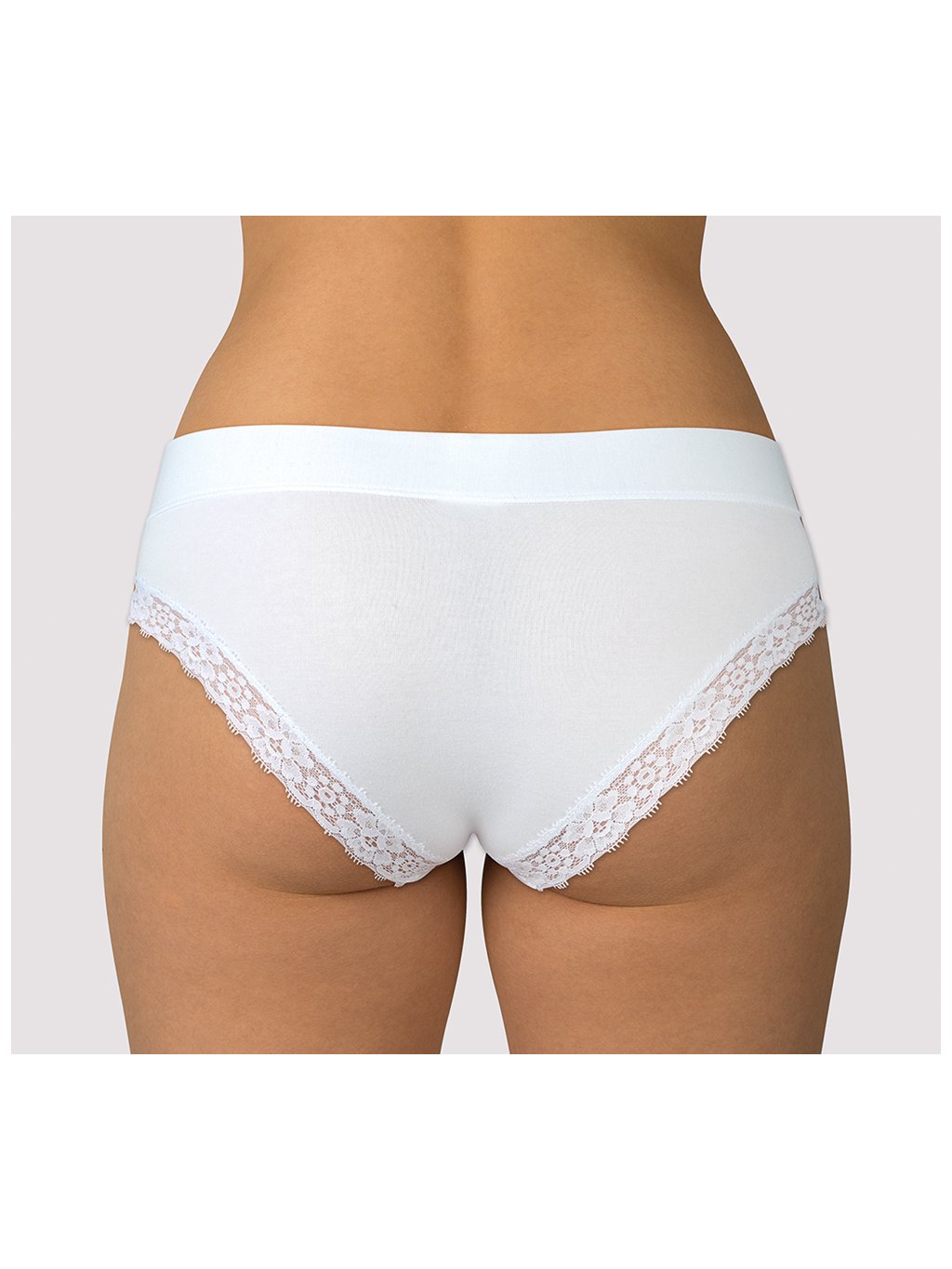 Dámské bokové kalhotky se sníženým pasem. Kalhotky jsou vyrobeny z velmi kvalitní elastické bavlny s příměsí vlákna Tactel, které dodává materiálu hebkost a prodyšnost. Materiál se skvěle přizpůsobí postavě a drží stálý tvar prádla. Díky širokému lemu v pase ideálně přiléhají k tělu a jsou velmi pohodlné. Komfortní lem okolo nohou zaručuje, že se kalhotky nezařezávají do stehen. Zadní strana kalhotek je olemována měkkou a pružnou krajkou. Bavlněný klínek.