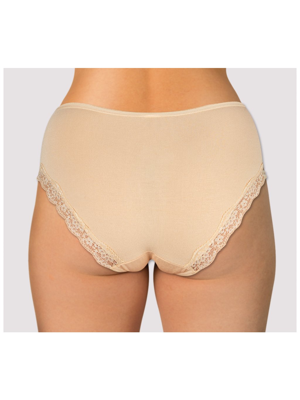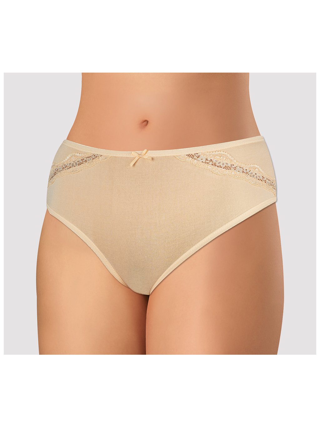 Dámské kalhotky klasického střihu. Kalhotky jsou vyrobeny z velmi kvalitní elastické bavlny s příměsí vlákna Tactel, které dodává materiálu hebkost a prodyšnost . Materiál se skvěle přizpůsobí postavě a drží stálý tvar prádla. V pase je našitá elastická pruženka. Kolem nohou je příjemná elastická krajka. Bavlněný klínek.
