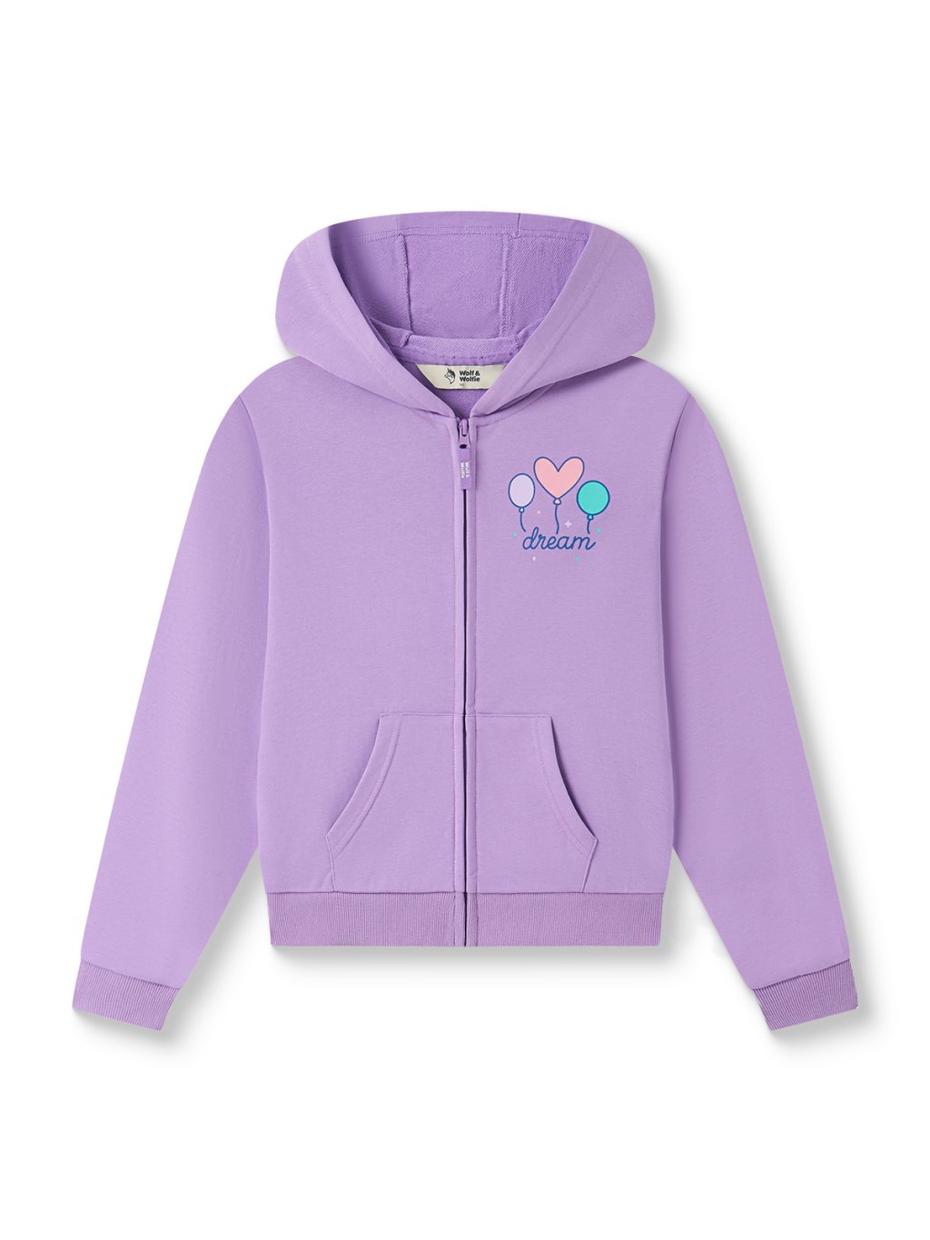 Dívčí bavlněná mikina s kapucí - Wolf & Wolfie M2653, fialková