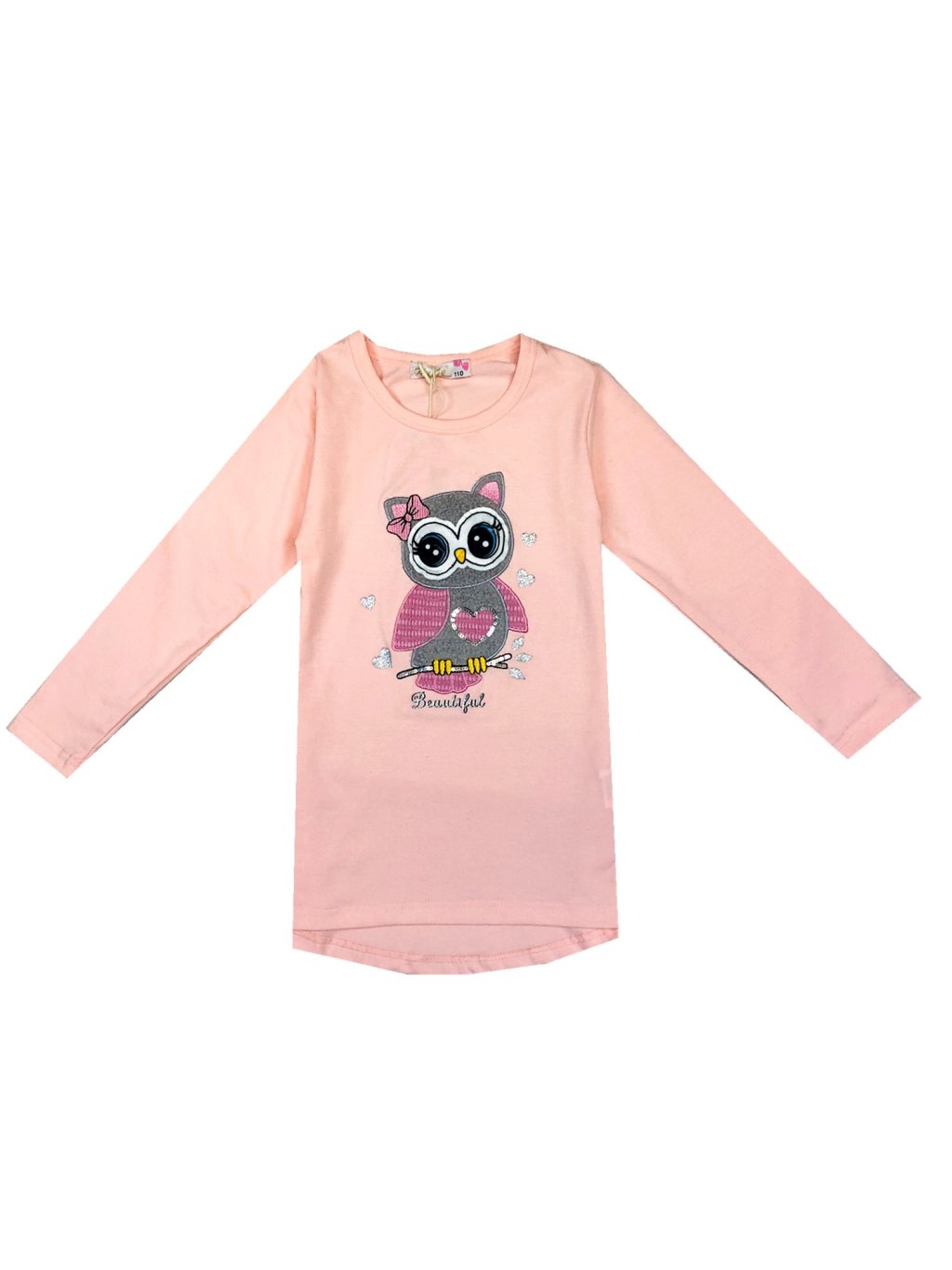 Dívčí triko/ tunika, malinko do A, očička sovičky při dotyku blikají, 65% bavlna, 30% polyester, 5% elastan