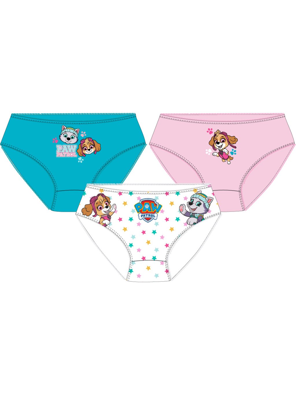 Sada 3 kusů dívčích bavlněných kalhotek s motivem Paw Patrol