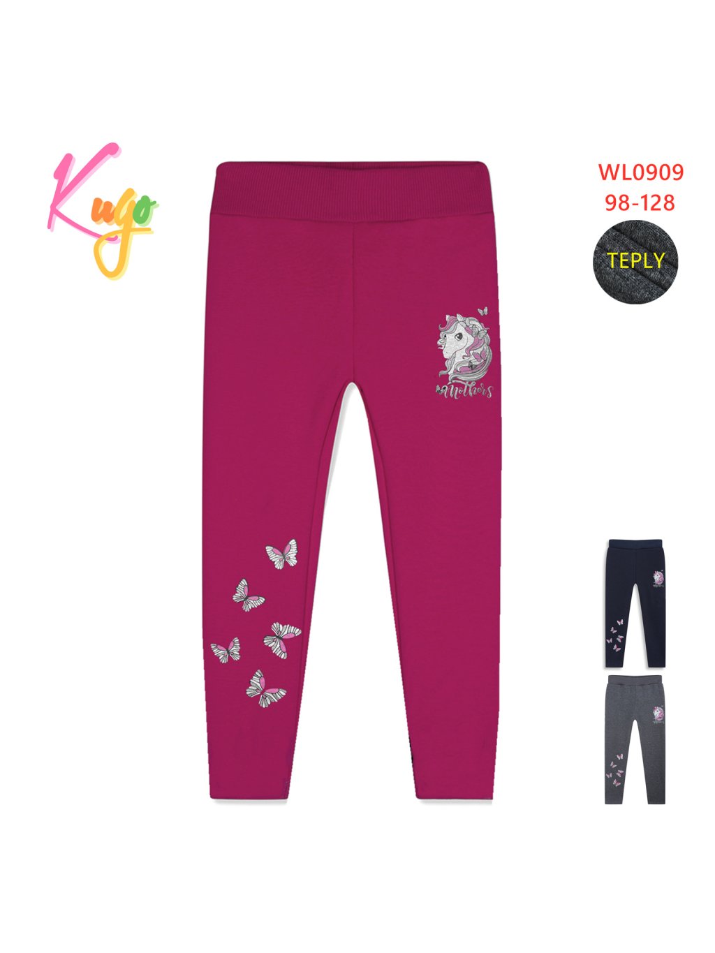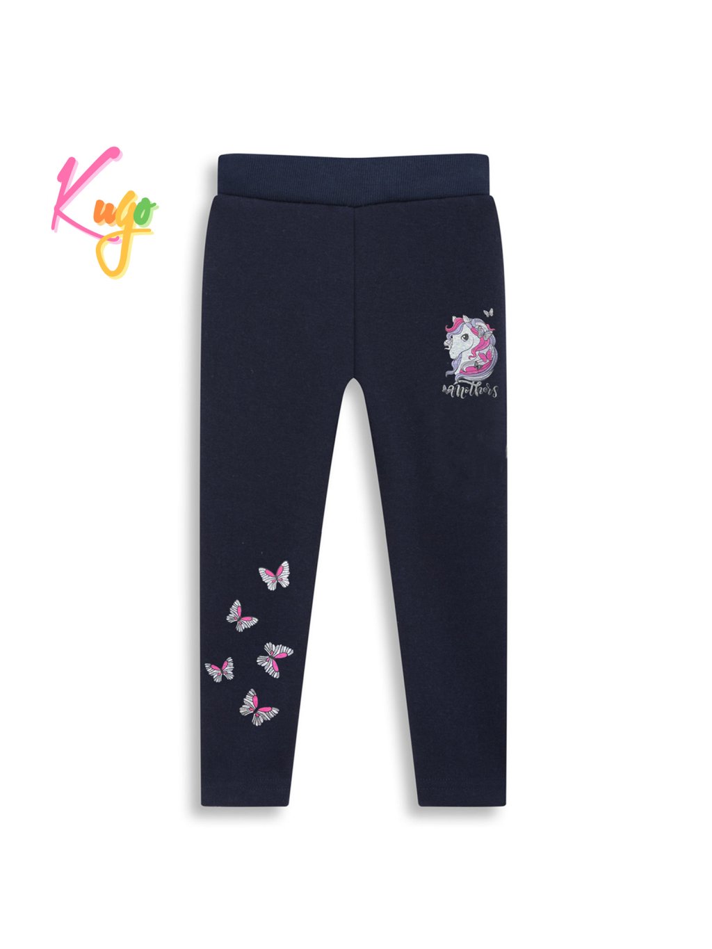Dívčí legíny s aplikací, zateplené - KUGO WL0909, tmavě modrá