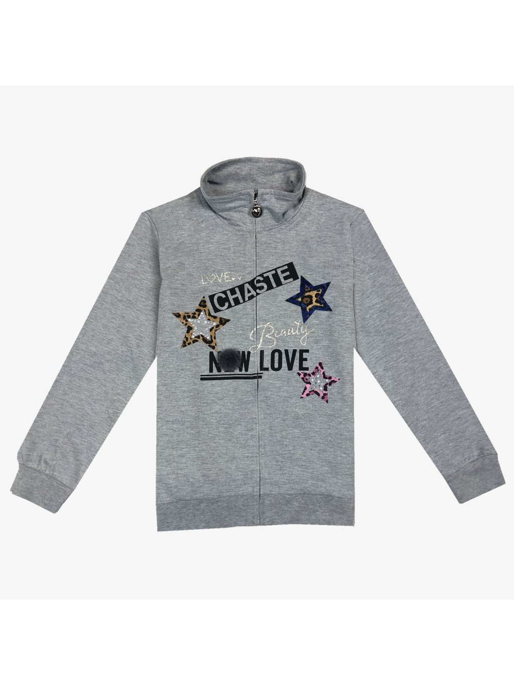 Dívčí mikina s aplikací, slabší, na zip, dvě kapsy z boku, materiál 95% bavlna, 5% elastan