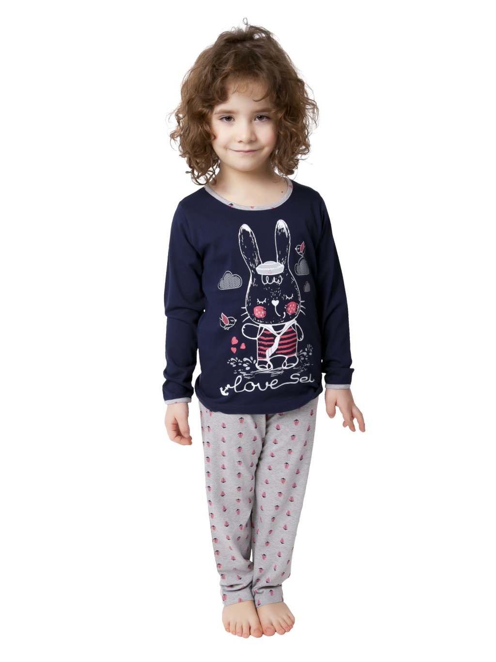 Dívčí pyžamo, kalhoty a lemy celotisk kotvičky. Velký centrální tisk na předním díle. Volné zakončení rukávů a kalhot.