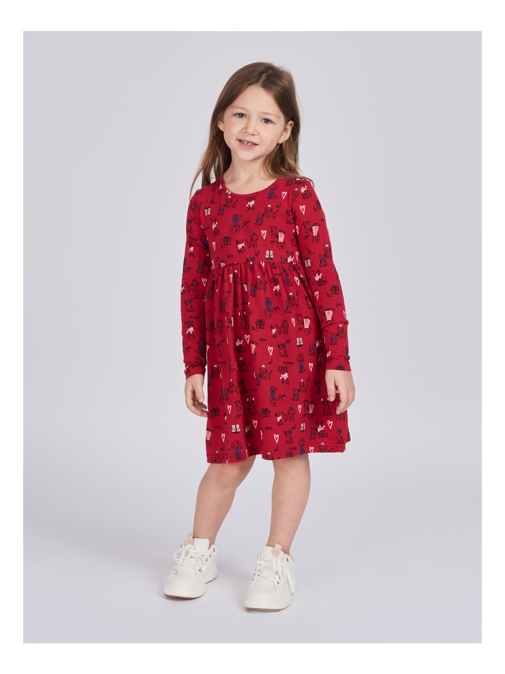 Dívčí nabrané šaty s dlouhým rukávem