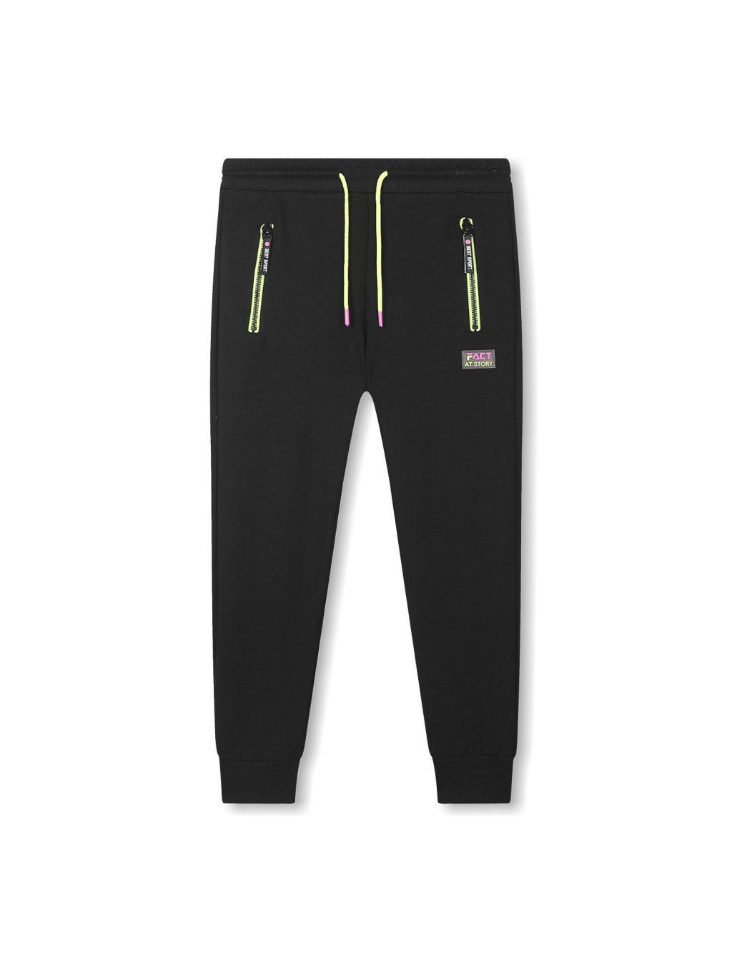 Dívčí tepláky - KUGO WT0839, černá/ signální aplikace