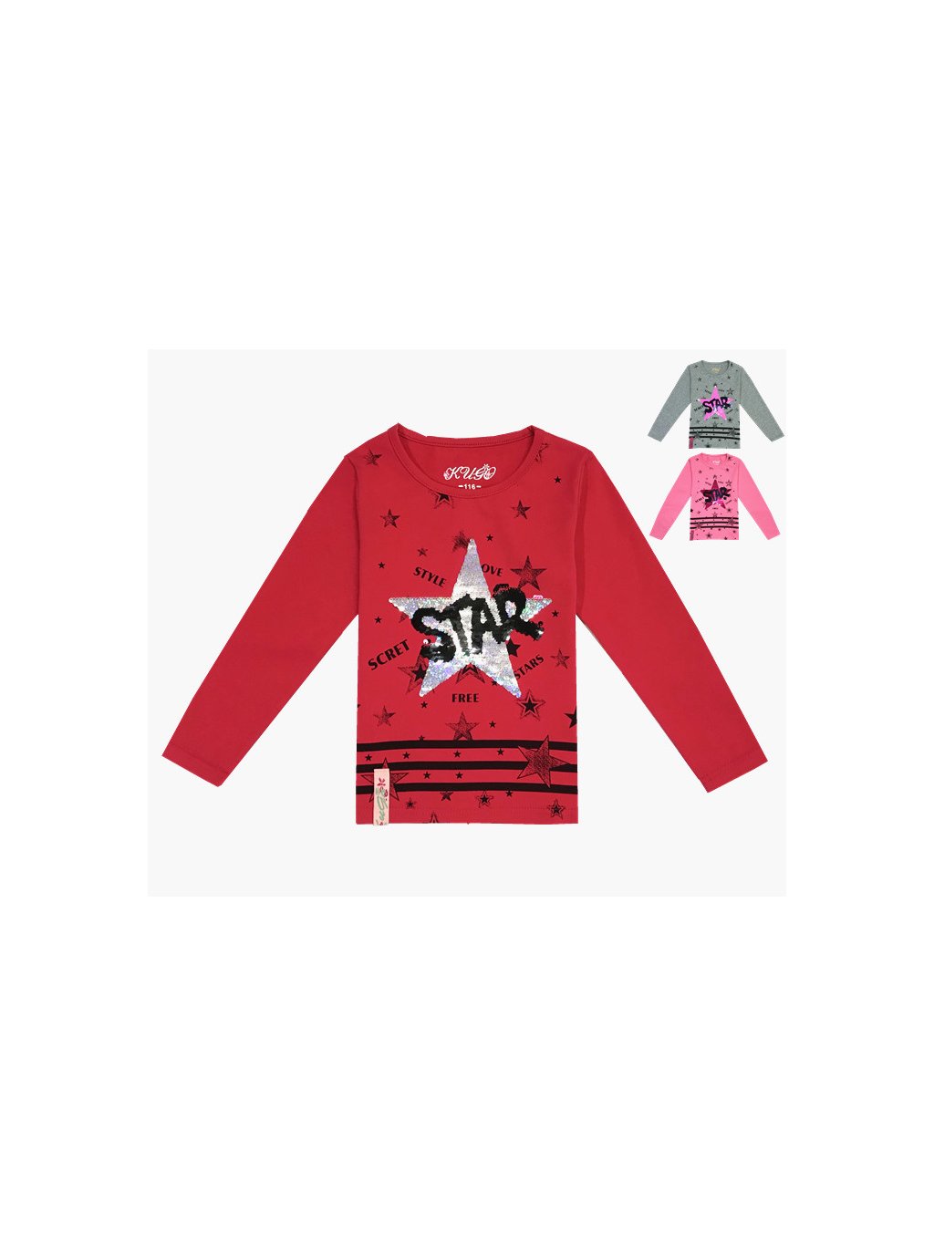 Dívčí triko dlouhý rukáv, nápis s měnícími flitry, materiál 95%bavlna, 5%elastan