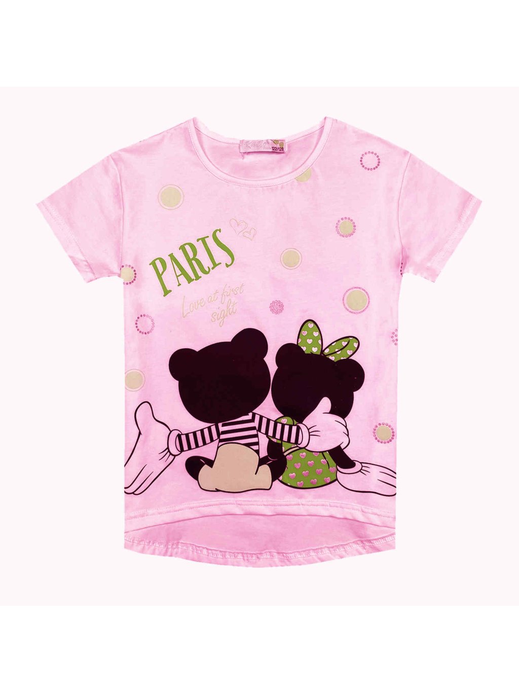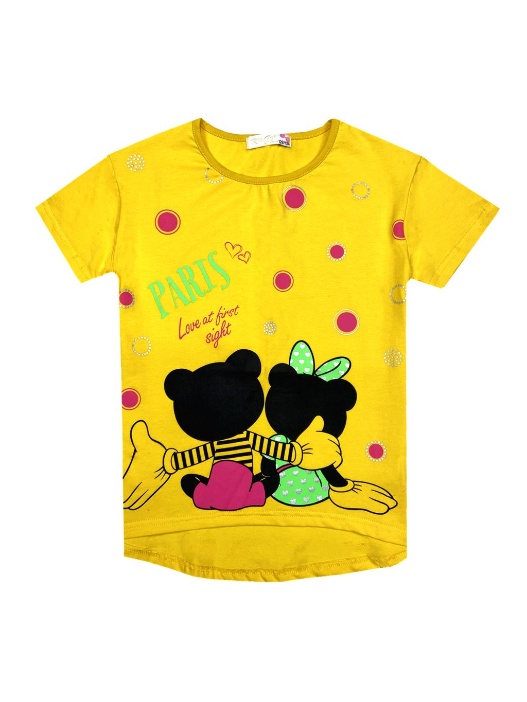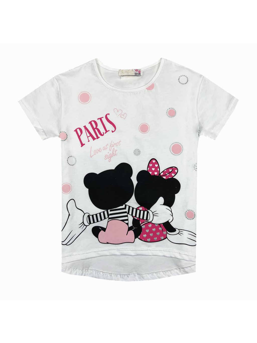 Dívčí triko krátký rukáv, lehce rozšířeného střihu s malinko prodlouženými zády, materiál 95% bavlna, 5% elastan