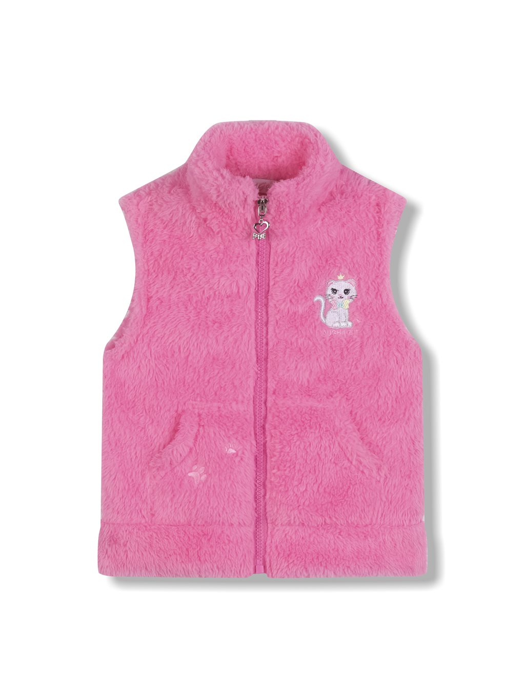 Dívčí heboučká vesta, zapínání na zip, motiv kočička, dvě kapsy