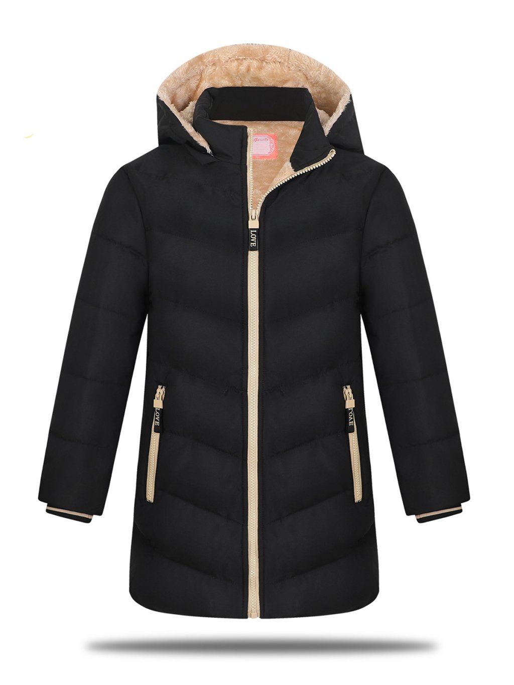 Dívčí zimní kabát - KUGO KB2380, černá / béžové zipy
