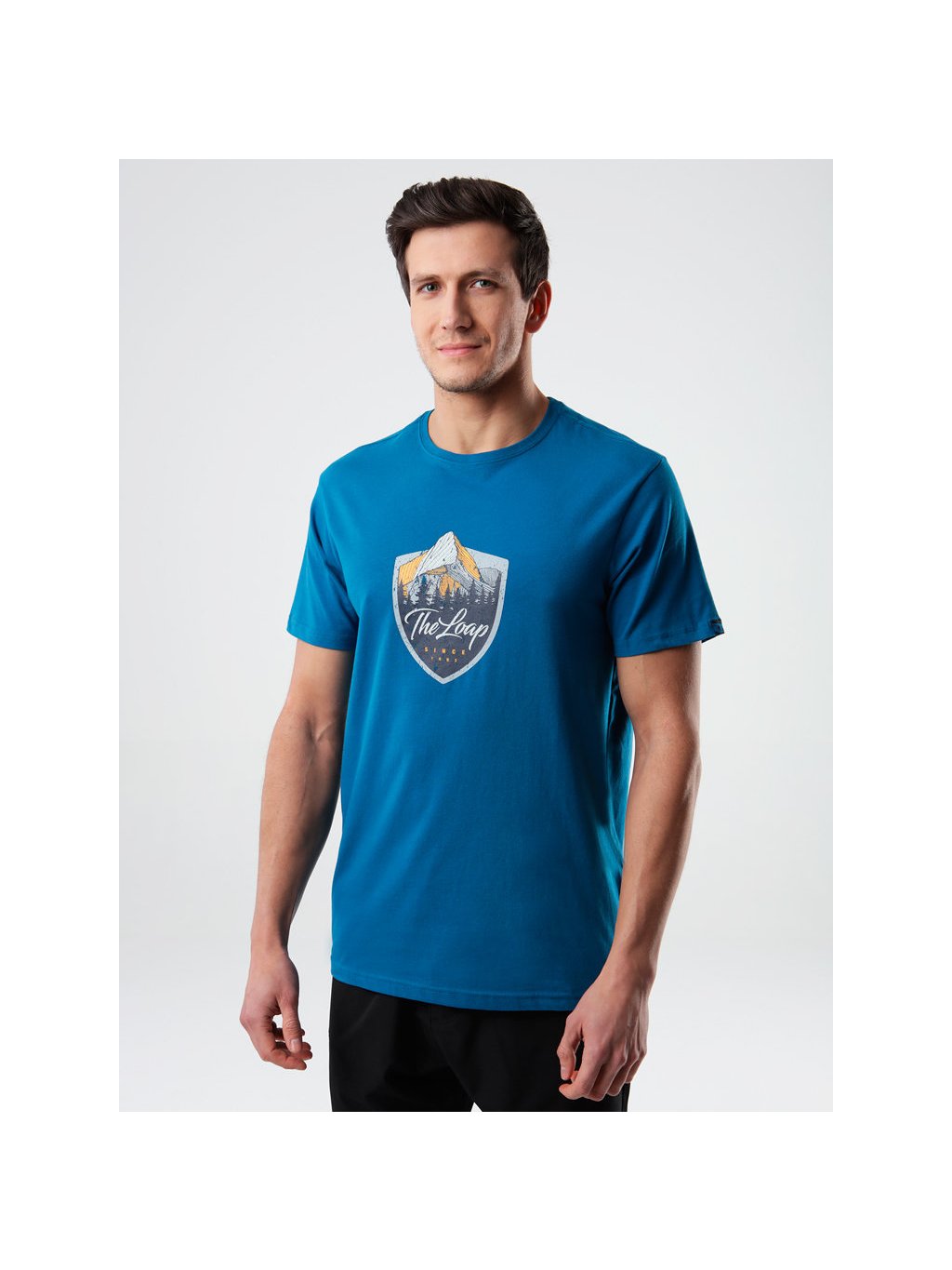 Pánské triko LOAP ALESH s krátkým rukávem má klasický střih (Regular Fit) s kulatým výstřihem. Je z bavlny s příměsí elastanu (2 %). Na těle je velmi příjemné a díky elastanu také pružnější a přiléhavější, méně se mačká. Toto pohodlné tričko s gramáží 190 g/m2 má potisk na hrudi. Hodí se na každodenní nošení – do práce, do města, na sraz s přáteli nebo cestování. Model je vysoký 183 cm a má na sobě velikost M.